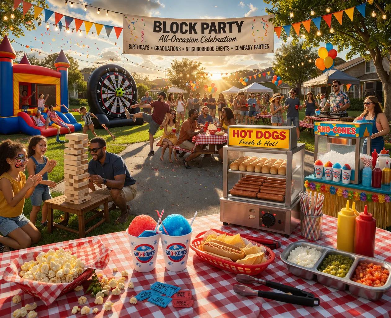 Nothing brings the fun like a classic carnival snack. Our concession machines turn any party into a special event. Whether you're craving fluffy cotton candy, buttery popcorn, or icy sno-cones, these crowd-pleasers keep guests entertained and satisfied.